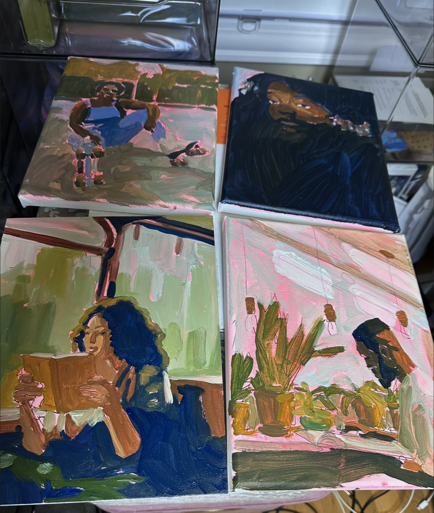 In my studio work, I draw inspiration from my own life experiences,- travels, city living and rural upbringing, and relationships with friends and family. Join our email list for exclusive access! Ready-to-ship originals and limited-edition prints, available for purchase. Each piece reflects the same attention to detail and quality as commissioned work.